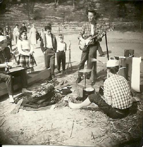 links nach rechts: Charly [T.] (Kistenbass), Heinz ? (Banjo) Klaus Lehmann (Gitarre),