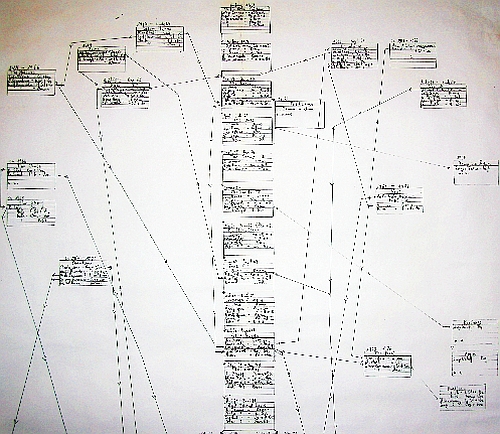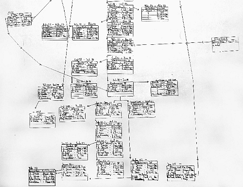 handschriftlich und chronologisch gegliedert eine Art Landkarte der