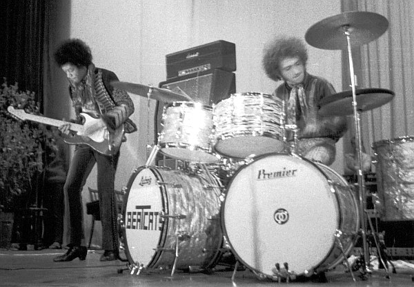 Jim Hendrix Experience spielt auf dem Schlagzeug der Beat Cats, die