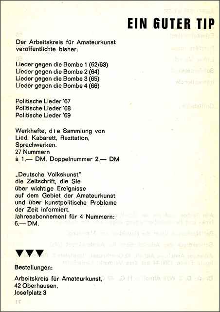 unterstützten Flugblattaktionen, bauten ihre Lieder in Sprechtexte ein,